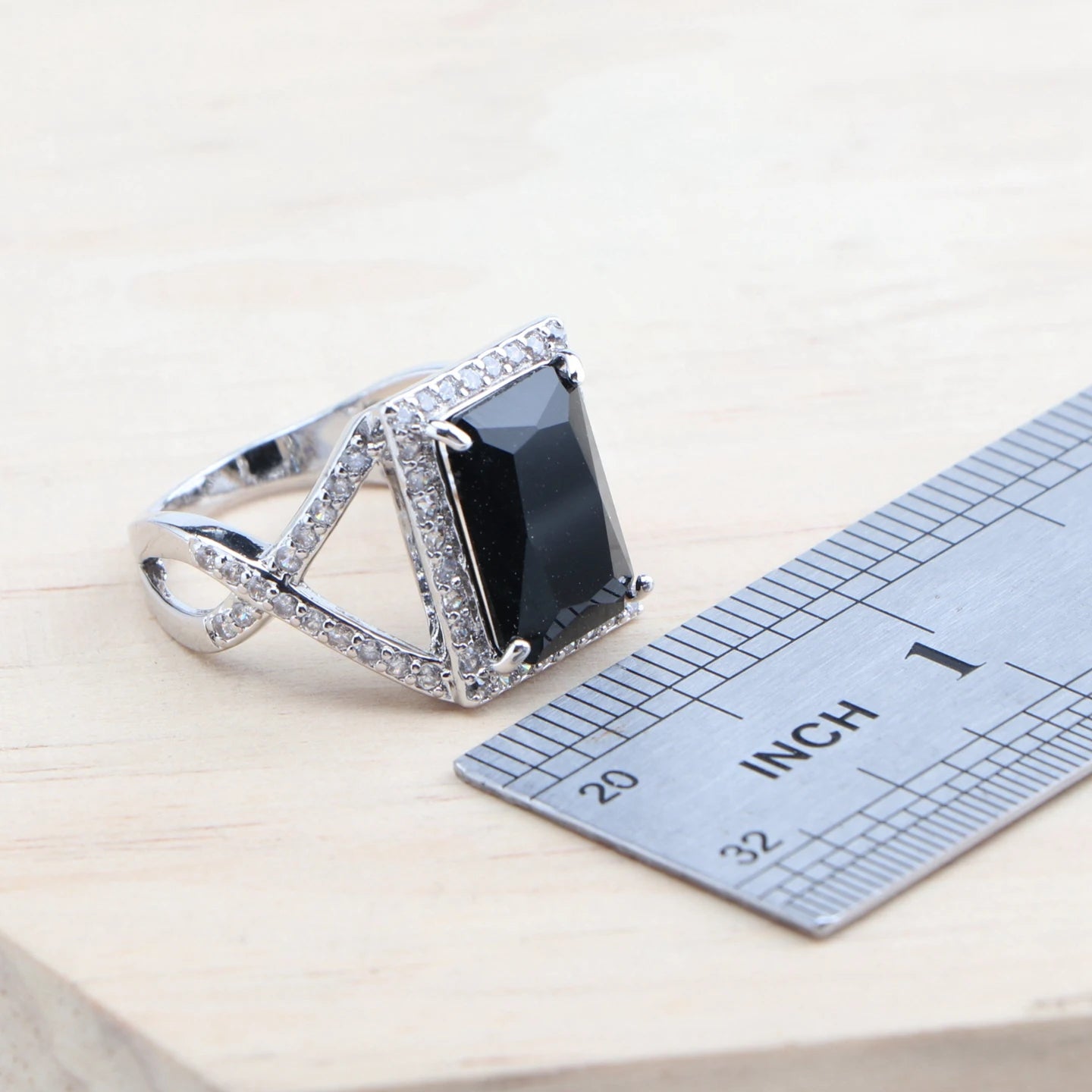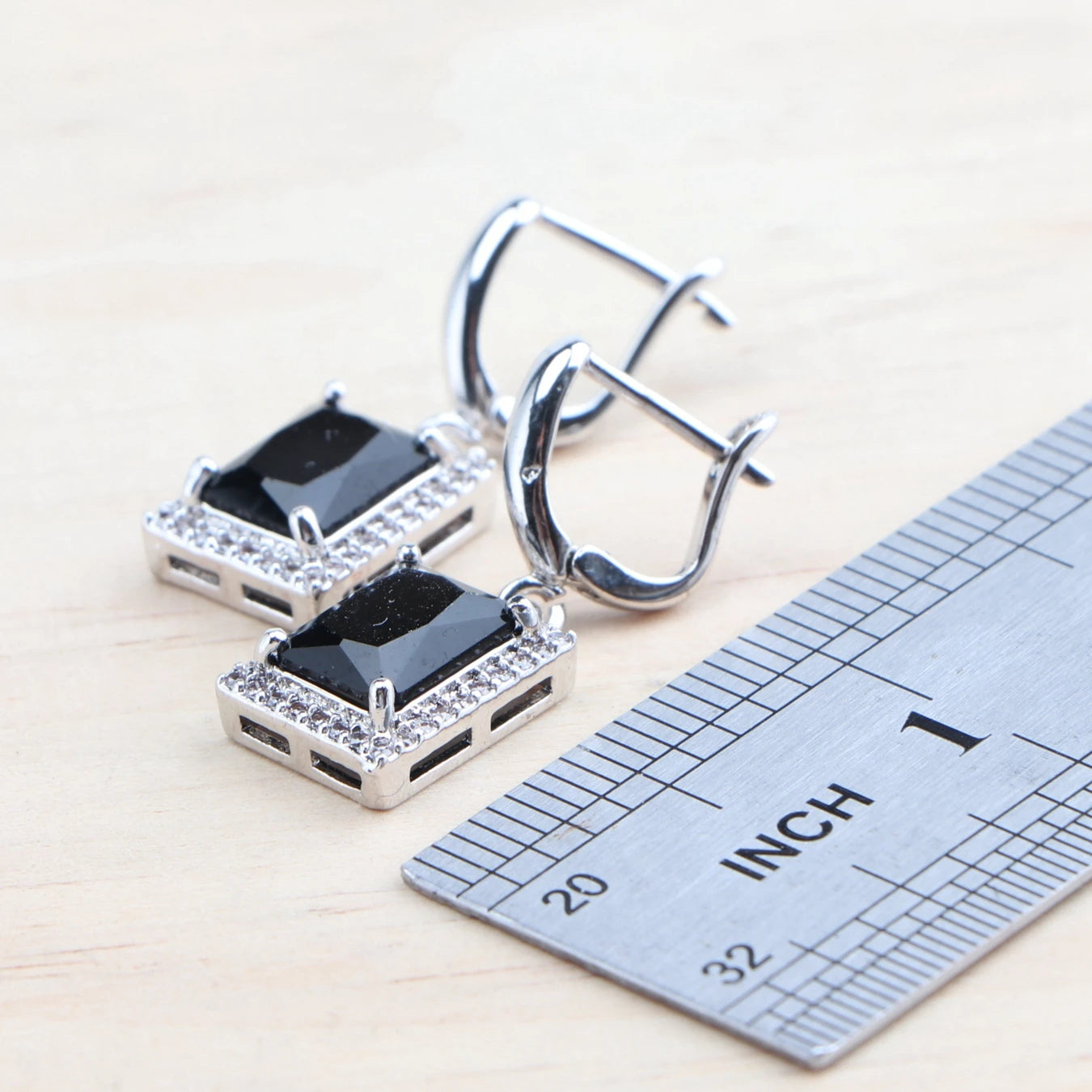 925 Silver Bridal Jewelry Sets Wedding Black Zircon Bracelets Earrings Rings Pendant Necklace Set For Women