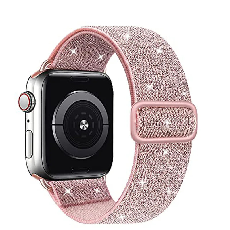 Add a touch of glamour to your Apple Watch with this dazzling glitter strap. Made from high-quality nylon and polyester, this strap is both comfortable and durable. It features an elastic design that allows for an adjustable fit, ensuring it stays snug on your wrist no matter the activity. Available in a range of colours, this strap is the perfect accessory to elevate your Apple Watch style. It's compatible with multiple Apple Watch sizes, making it a versatile addition to your collection.