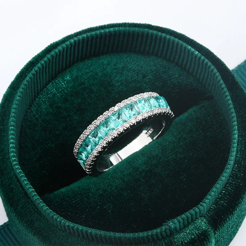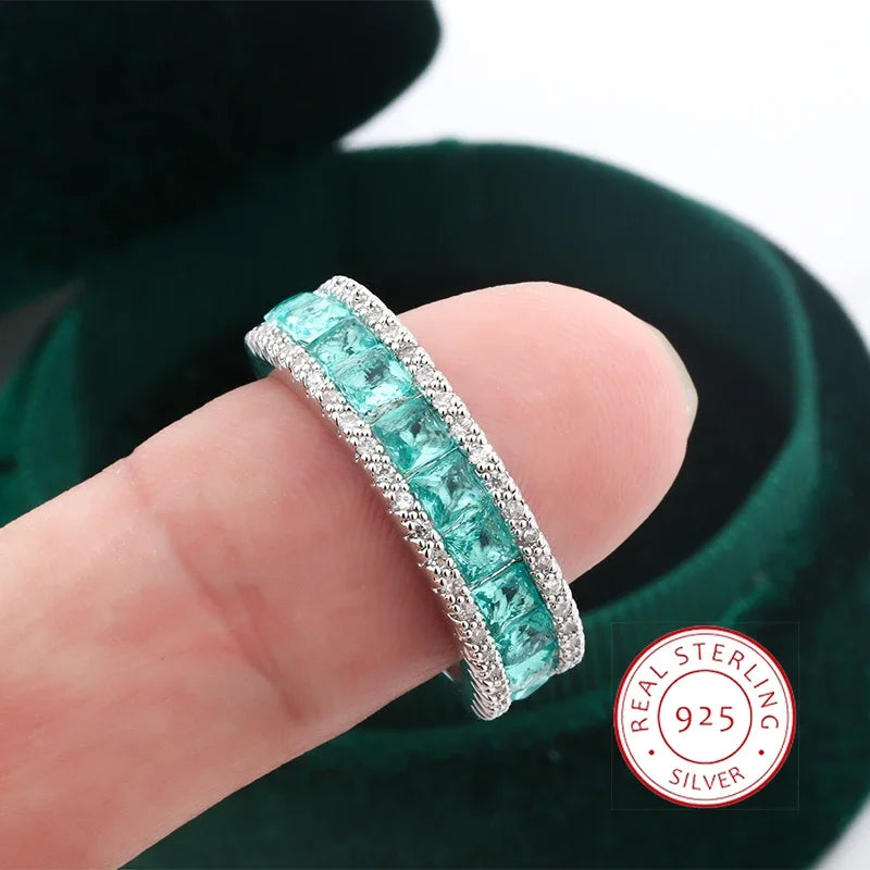 Beautiful 925 Silver Plated Women's Ring Geometric Square Green Zircon Jewelry Anniversary Gift Fashion Engagement Ring